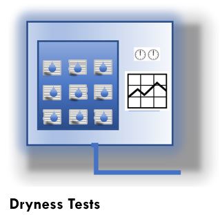 These tests are used to verify that the design of the operating cycle, selection of the process parameters and the moisture contained in the steam are such that the level of moisture remaining in the load at the end of a sterilization process has not increased by more than 1% for textiles and 0.2% for metal. See BS EN 285 for the test method.