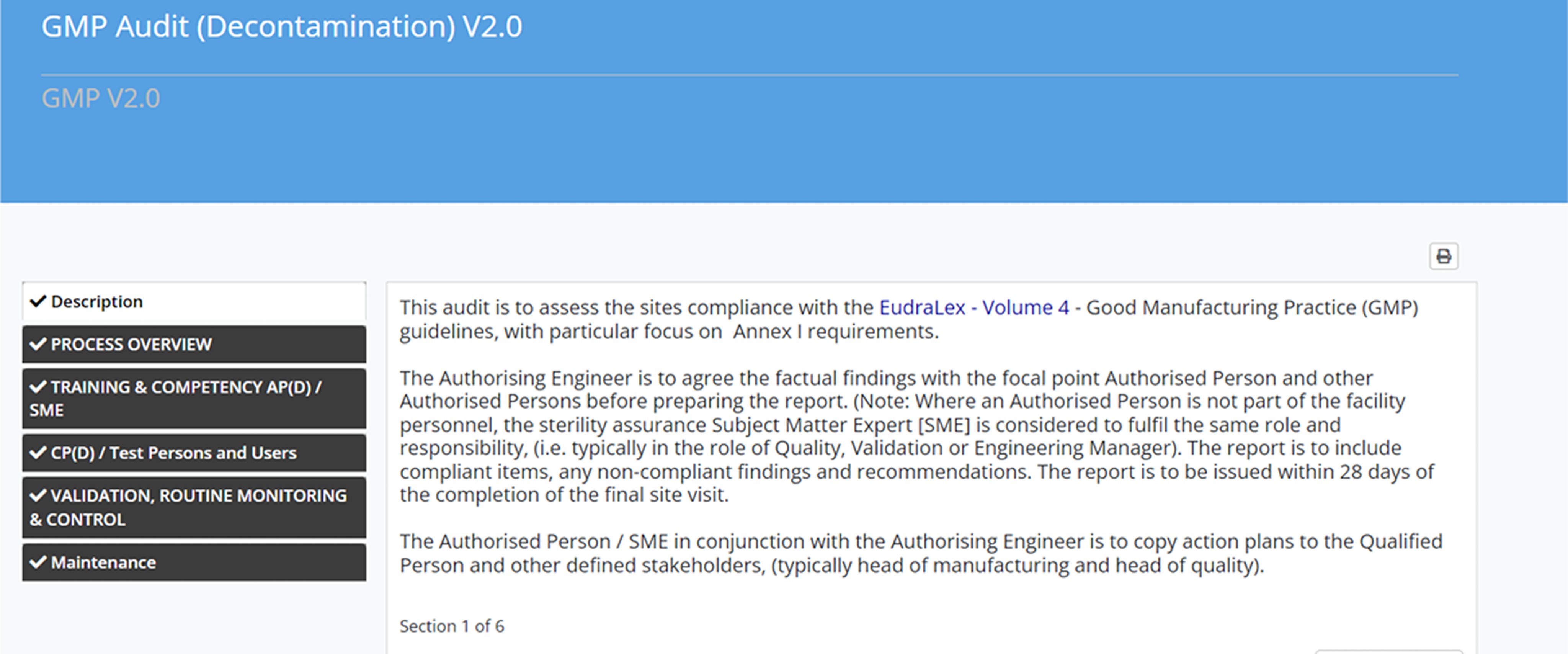 Based on the proven Quiqcare platform used by NHS England and over 180 NHS Trusts, the GMP Annex 1 Compliance Assessment Tool is a cloud-based software co-developed between myself, Kevin Peacock and Quiqsolutions.
